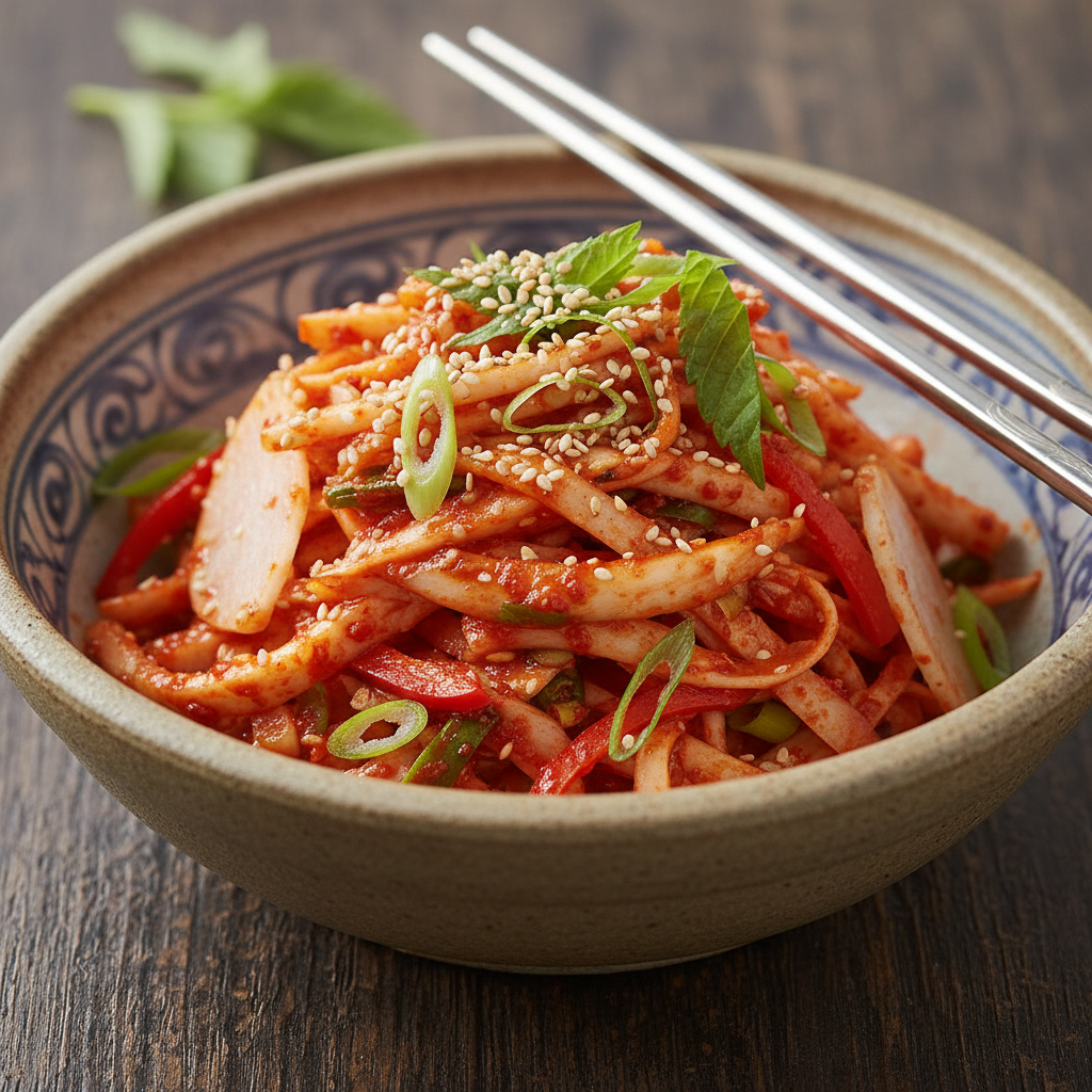 2) 더덕무침: 매콤 새콤한 양념으로 입맛 돋우는 별미요리입니다.